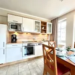 Apartmán Fewo 720, Seepark Sellin, umístěný 10 minut chůze od centra města Sellin, nabízí parkoviště poblíž. Apartmán zahrnuje pokoje s balkónem, vysokorychlostním internetem a detektory kouře i kuchyňkou.